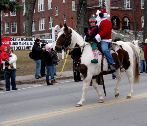 Then, colorful floats from area businesses and organizations bearing children and adults dressed to fit the theme of Santa’s Little Helpers began to arrive.
