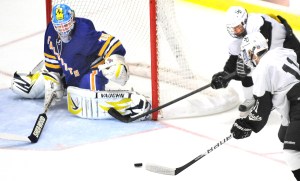 Christopher kept it a one-goal game with a nice stop on a point-blank bid by Samaras, who  skated in all alone on a between-the-skates pass from Grygiel.
