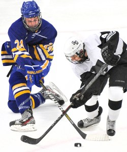 Junior Chase Hainey got the Saints on the board 42 seconds after Samaras’ goal to make it 2-1. St. Dom’s got physical after that and outshot the Yachtsmen, 10-7, in the period, but also lost sophomore defenseman Matt Chasse for the bulk of the period with a 10-minute misconduct penalty for checking from behind.