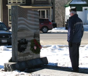 Mills then shared the histories of Farmington’s veterans’ monuments at which the wreaths were placed.