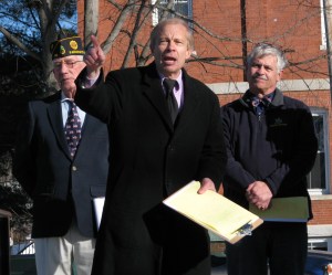 Sen. Saviello then continued the program, saying, “We are gathered here today at this memorial site and memorial sites all across America to remember that we are one nation with one flag.”
