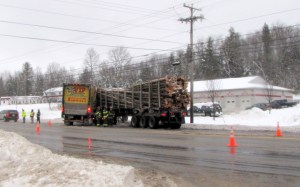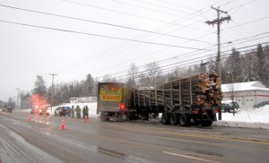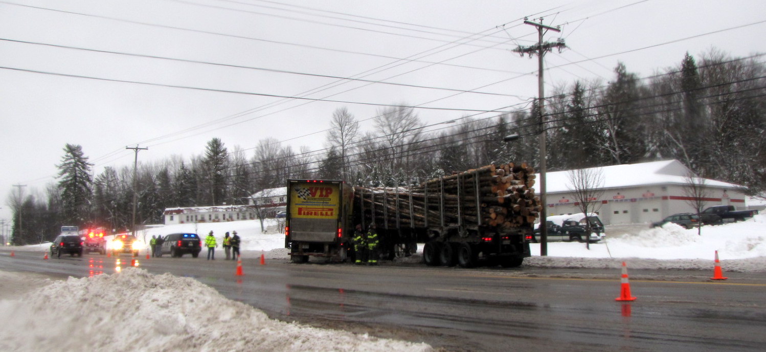 Whether road conditions affected the ability of the driver of the logging truck to stop is uncertain, said Fire Chief Terry Bell. Farmington Fire and Rescue helped Farmington Police control traffic around the scene.