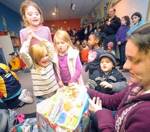 LEWISTON — Jen Marcotte of Auburn watched nervously as the little girl opened her present.