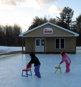 In addition to the skating rink, the recreation area has open space where children can build snowmen, individuals can walk, snowshoe and cross country ski. They, too, can use the hut to get warm.