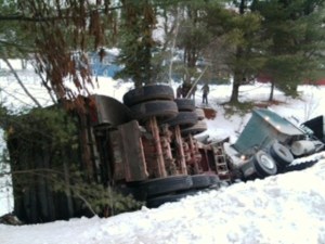 The rig overturned into a brook between Maple Ridge Road and Deer Hill Road on the side of Crystal Lake at about 4 a.m.