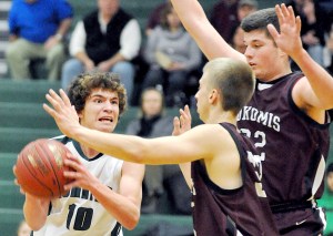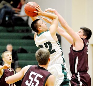 Mitchel Davis grabbed the inbounds lob from Levi Morin and banked in a relatively uncontested four-footer at the buzzer, lifting Leavitt to a crucial 55-53 KVAC boys’ win over Nokomis.