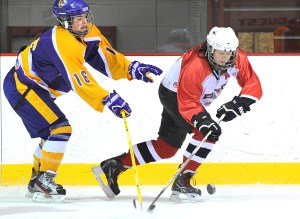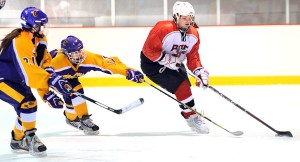 Even without Landry’s input, the Red Hornets churned out a slim lead at the first intermission on goals by Shelbea Russell, Emma Martineau and Amanda Williams.