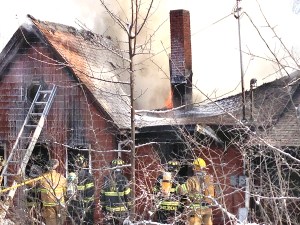 No one was home when the fire started. A family cat perished in the blaze, Assistant Fire and Rescue Chief Ross Gagne said. Firefighters had trouble getting to the blaze through a double-walled roof, Fire Chief Michael Arsenault said at the scene. The back of the building collapsed from fire damage.