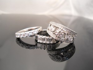 If price is a challenge but quality is non negotiable, consider estate jewelry. A wedding band when purchased as an estate piece can save the buyer half the cost of the same ring when purchased new. For newlyweds, the considerable savings can be used toward the honeymoon, furniture or a deposit on a home.