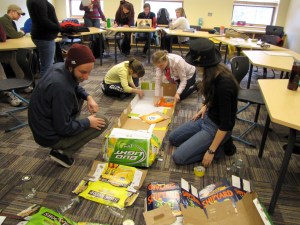 Sleds need to be made from recyclable items to promote two goals of the Sustainable Campus Coalition: “To educate the campus and the community about environmental sustainability and to advocate collaboration and camaraderie among students, faculty, staff, and the community, while working toward common sustainability goals,” according to its website.