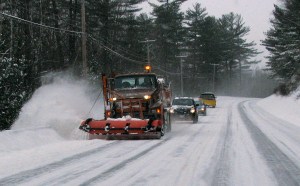 Other than the occasional Maine Department of Transportation plow and sanding trucks, few vehicles were seen on Route 2 between Wilton and Rumford during the morning and early afternoon. The road was plowed and sanded as light snow blew around in the wind.