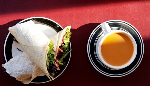 “We’re keeping it basic and simple to start,” says Grenier, by offering three wraps and three soups every day. With an emphasis on health, Local Grind’s wrap offerings include chicken salad with sweet cranberries, walnuts and fresh spring greens, turkey, bacon and cheese with tomato and mixed greens, and a vegetarian option — roasted veggie hummus, red peppers, pine nuts, tomato, shredded carrot and mixed greens.