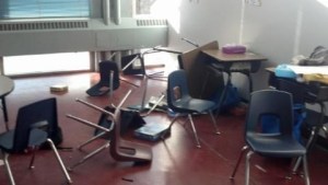As the teacher and ed tech stood helplessly by, the boy grew more agitated and began overturning desks and chairs. “Fortunately the ed tech was able to grab three laptops before they were slammed to the floor,” Webster said.