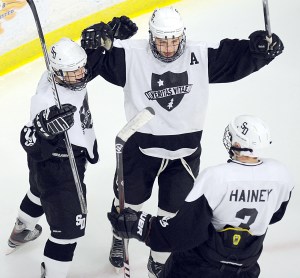 Kyle Holtet also had a pair of goals for St. Dom’s (12-6-1), while Brad Berube and Dillon Pratt added one each.