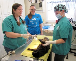 Morton and Geis were given special Spay Day smocks, and the staff wore special T-shirts announcing the World Spay Day event.