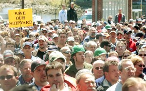 The political stakes meant little to the workers gathered outside the Portsmouth Naval Shipyard this week during their lunch break.