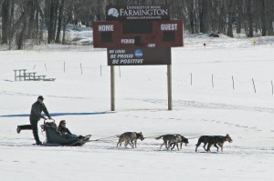 Over at Prescott Field, the faces of Logan Dolbier, 10, of Farmington and Keegan Austin, 11, of Rangeley lit up with big grins when dog sled musher Jacob Turner of Jay and a team of six dogs took off unexpectedly.