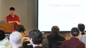 “We’re hard on you guys and that’s on purpose,” Red Team leader Daryl Johnson, a professor at Rochester Institute of Technology, which spearheaded the first competition in 2008, said to the group of 80 or so students. “These are all things that happen in the real world.”