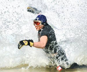 Dozens of brave souls skimmed across the pond at Lost Valley Ski Area in Auburn on Sunday afternoon during their annual end of season Snodeo.