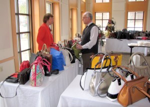 Franklin Memorial Hospital President Rebecca Ryder looks over handbags Monday at the Bag Ali sale taking place in the Bass Room at the hospital. Named after his daughter, Allison, Joe Uretsky of Boston and his wife, Harriet, sponsor handbag and accessory fundraising shows to buy equipment or items for the hospital. The auxiliary has been sponsoring the event every April since 2005, receiving a portion of each sale, Joe Uretsky said. The sale will continue Tuesday from 7 a.m. to 3:30 p.m.