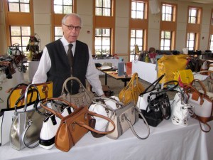 Joe Uretsky of Boston offers a variety of handbags, backpacks and wallets during the Bag Ali sale Monday and Tuesday in the Bass Room of Franklin Memorial Hospital. The will continue from 7 a.m. to 3:30 p.m. Tuesday. The hospital Auxiliary has sponsored the event every April since 2005. They receive a portion from each sale and use the funding to buy items for the hospital.