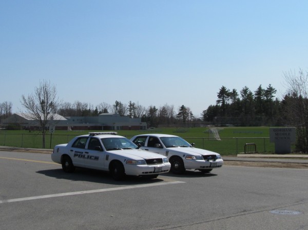 While police investigated Friday’s incident, they prevented vehicles from approaching the middle school. Two marked Gorham Police Department cruisers were stationed at the end of the Weeks Road driveway leading to the school turning away cars.