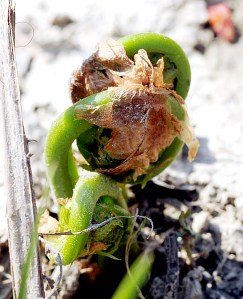 He believes that fiddleheads re-seed themselves when high water picks them up and deposits them on a bank farther down stream.