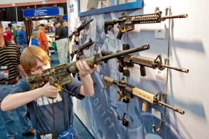 Inside the hall, visitors strolled past acres of displays of rifles, pistols, swords and hunting gear. Under Texas law, attendees could carry concealed weapons with a permit.