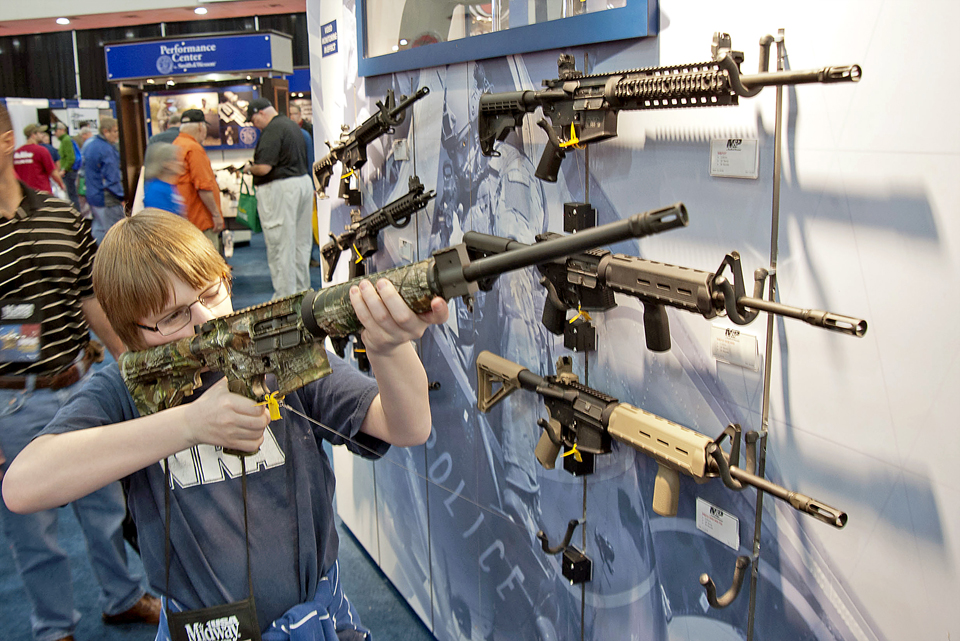 Inside the hall, visitors strolled past acres of displays of rifles, pistols, swords and hunting gear. Under Texas law, attendees could carry concealed weapons with a permit.