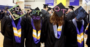 In all, USM graduated 1,000 students Saturday, for the first time splitting graduation with ceremonies at 9 a.m. and 2 p.m. at the Costello Sports Complex Field House on the Gorham campus. The traditional site, the Cumberland County Civic Center, is under construction.
