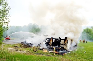 The mobile home sustained minor damage to the exterior; the Verrill Road two-story house was a total loss.