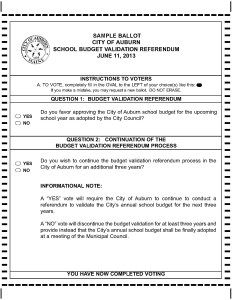 Voting will take place 7 a.m.-8 p.m. June 11 at Auburn Hall. The $38.37 million school budget, up 6.9 percent, would mean a $128 annual increase in property taxes for a home valued at $150,000; that is not considering city hall or county expenses.