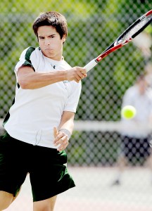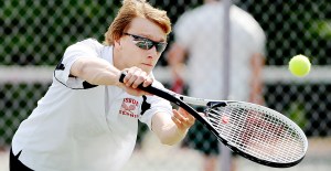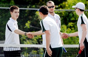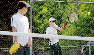 Lisbon’s Levi Dussault provided St. Pierre the toughest test in first singles. St. Pierre won the first set 6-1 and then rallied from a 4-3 deficit to win 6-4 in the second.
