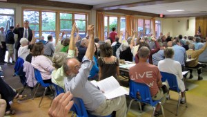 Moderator Ronald Aseltine ruled his amendment out of order. A move was then made to call the question, stopping all debate. That was voted down.