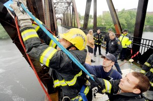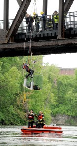 So Auburn rescue crews, joined by their peers from Lewiston, went down to the river with ropes and other gear required to save people from situations like balloon water landings. It all went very well, Masselli said, but their training isn’t over.