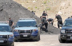 On Wednesday, at least seven state troopers searched both sides of a road just off the street where Hernandez lives. The officers used thin poles to pull back plants and search through undergrowth along the road.
