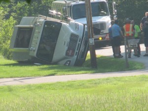 The company was expected to transfer the contents of the truck to another truck before righting the vehicle.