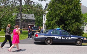 The state’s Major Crime Unit truck was on scene late Tuesday morning as detectives wearing blue gloves and cloth footies over their shoes entered the two-story gray house across Route 136 from the Burr Cemetery. Five cars were parked in the driveway behind police tape.