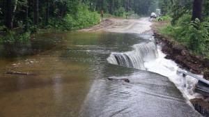 A flash flood washes out a section of Back Kingdom Road in Mexico on Tuesday. The deluge came five days after another that clogged two culverts and undermined the road.