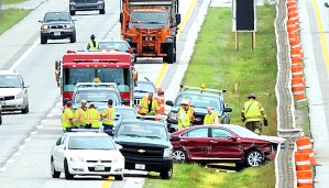 A vehicle traveling southbound on the Maine Turnpike near the Sabattus exit hit the guardrail. No other vehicles are reported to be involved. There were no details on any injuries.