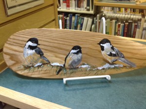 Each paddle features a different Maine-inspired scene, from loons to lupines, puffins to lobsters, and many stops in between. Several different genres will be represented, such as oils, acrylics, wood-burning, collage and gold leafing.