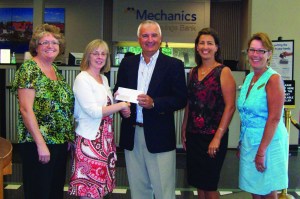Teri Blashke, second from left, development coordinator at Androscoggin Home Care and Hospice, receives a $1,500 check from Dick Roy, executive vice president of Mechanics Savings Bank. With them are members of Mechanics Savings Bank’s Charitable Contributions Committee, from left, Linette Dehetre, Chairwoman Lisa Hallee and Nancy Richard. The donation is to assist the agency in its mission of providing health care, independence and quality of life to area residents and their families in the comfort of their homes and communities. At the donation,