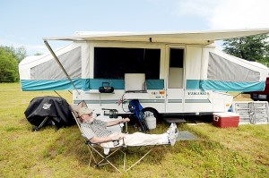 OXFORD — Amid the rock star-like motor coaches and rumbling, air-conditioned camper trailers parked outside Oxford Plains Speedway on Friday, Terry Gray created his own oasis.