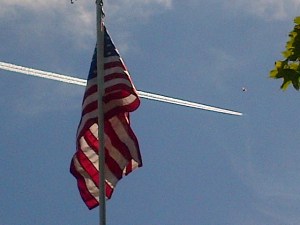 An American flag flies at Riverside Cemetery in Lewiston this week. It was donated by American Legion Post 31 of Auburn to replace one stolen last month.