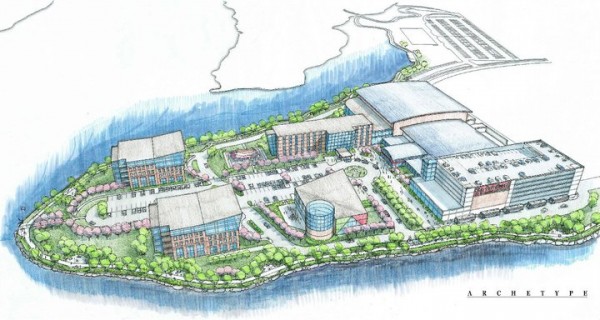 The development — dubbed The Forefront at Thompson’s Point — has been proposed for the 28-acre property near the Portland Transportation Center. Developers have planned a 3,500-seat event center that eventually will serve as the new home for the Maine Red Claws professional basketball team, a parking garage, hotel, restaurant and office buildings.