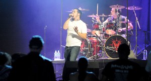 Vocalist for Rebirth to Ends, James Nickerson, performs on stage at the Monster of Rock concert at the Androscoggin Bank Colisee on Saturday night. Seven bands, including headliner Dead Season, performed.