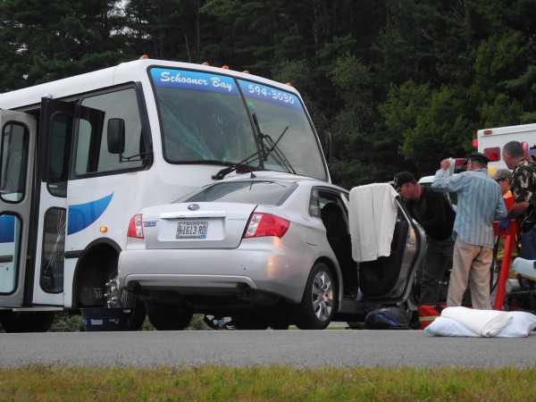 Jayashree Kalmath, 61, of Camden apparently had been turning left onto Route 1 from Northport Avenue when she drove into the path of the bus, police said. It took rescuers more than an hour to cut her out of her crumpled Subaru, and by the time she was freed, weather conditions grounded the LifeFlight helicopter that had flown to get her. She was taken to Eastern Maine Medical Center in Bangor by ambulance for medical treatment, but did not survive.