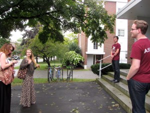 After the convocation, the students joined small discussion groups. Maline encouraged them to think about “ways we take place with us.”