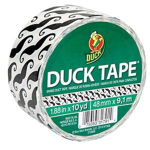 Duck Tape has gone amazing places of late. Pickle-print. Penguin-print. Mustache-print. Bag Lady even saw One Direction* Duct Tape in Claire’s a few weeks ago.