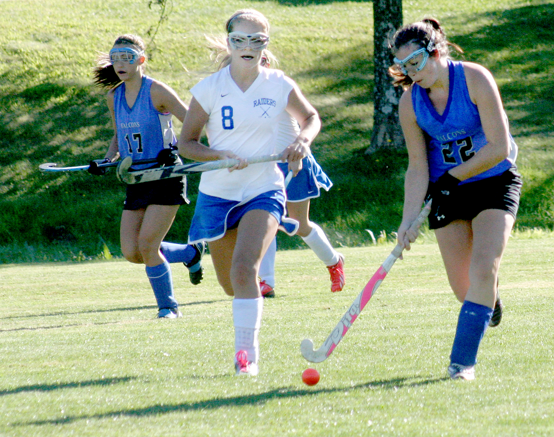 Transition played a key role in the Raiders’ second tally. Lexi Fuller finished that one off on a feed from Goulet. Three minutes later, she struck again, this time taking advantage of a turnover in the Mountain Valley zone and rolling the ball into the right corner of the cage.